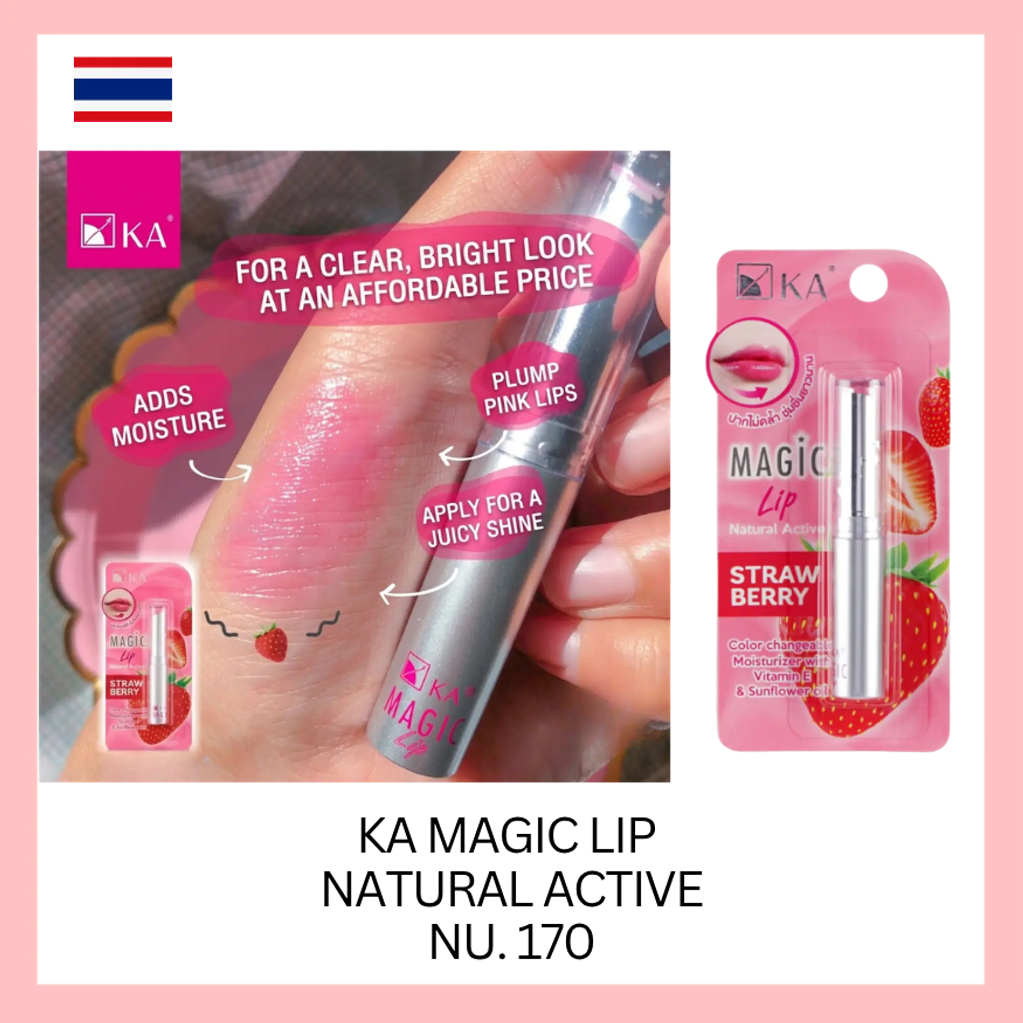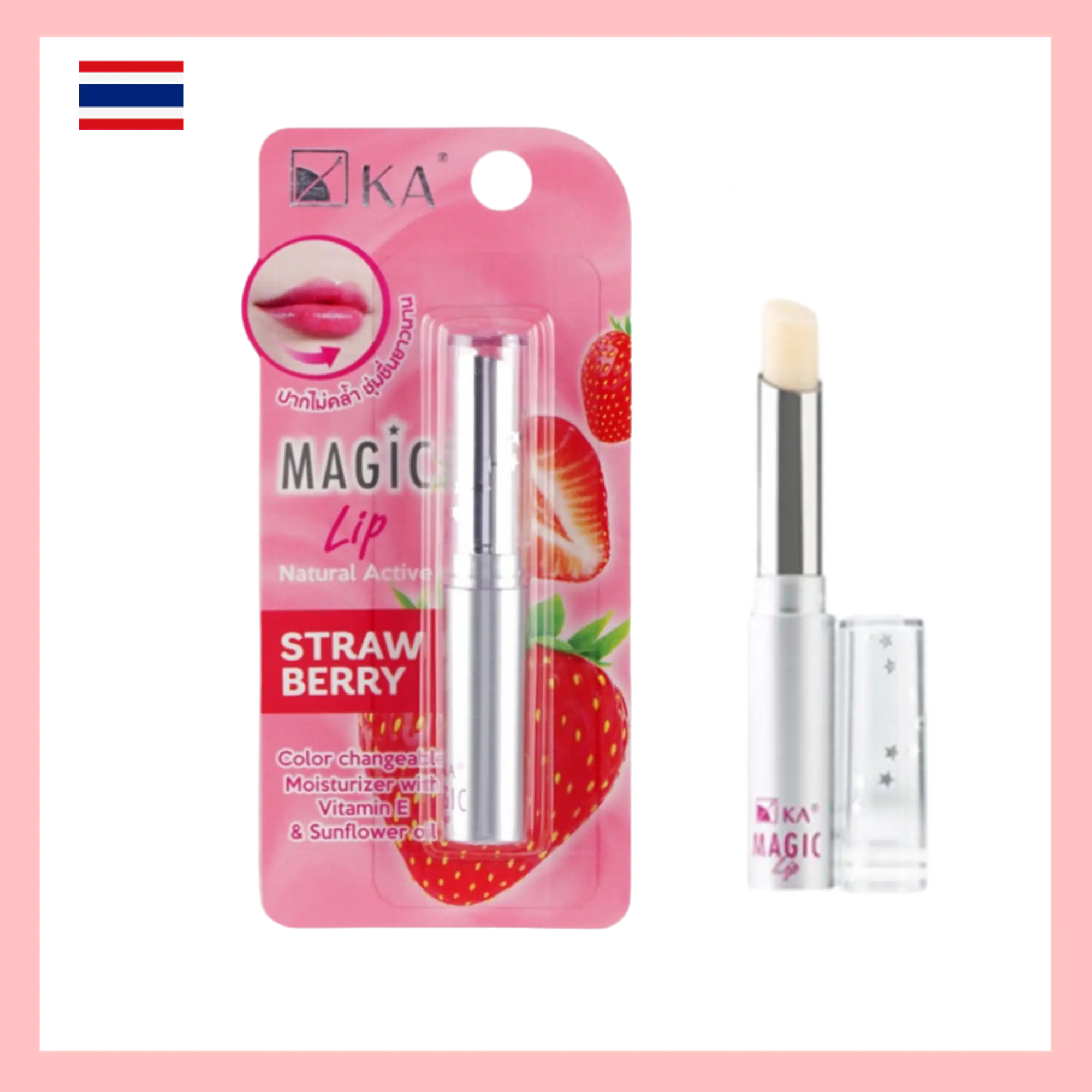 Natural Active Ingredients: KA Magic Lip Natural Active – Strawberry features a unique blend of natural actives carefully chosen for their lip-nourishing properties.