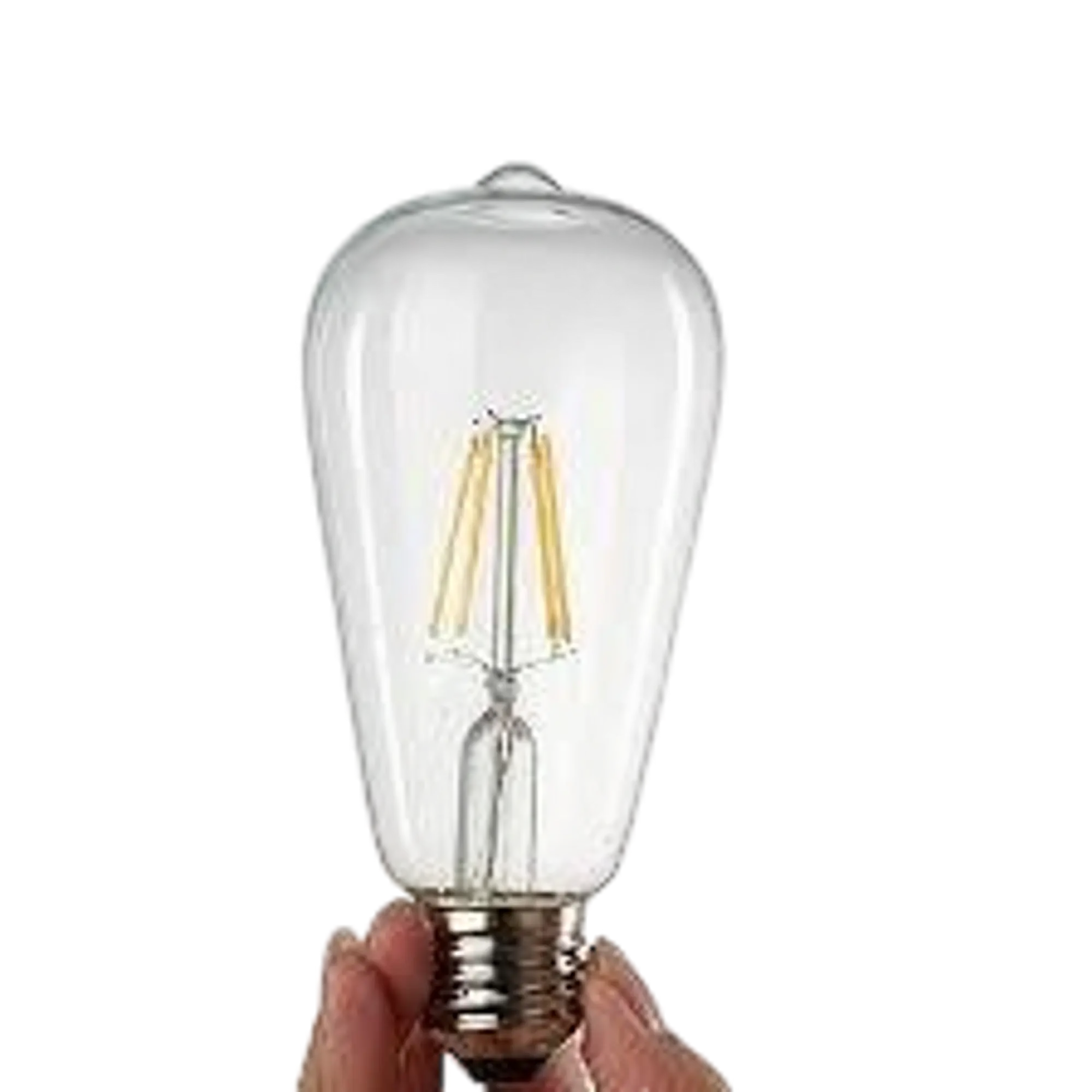 Design: This bulb mimics the look of early 20th-century carbon filament bulbs but uses energy-efficient LED strips (the orange vertical lines).