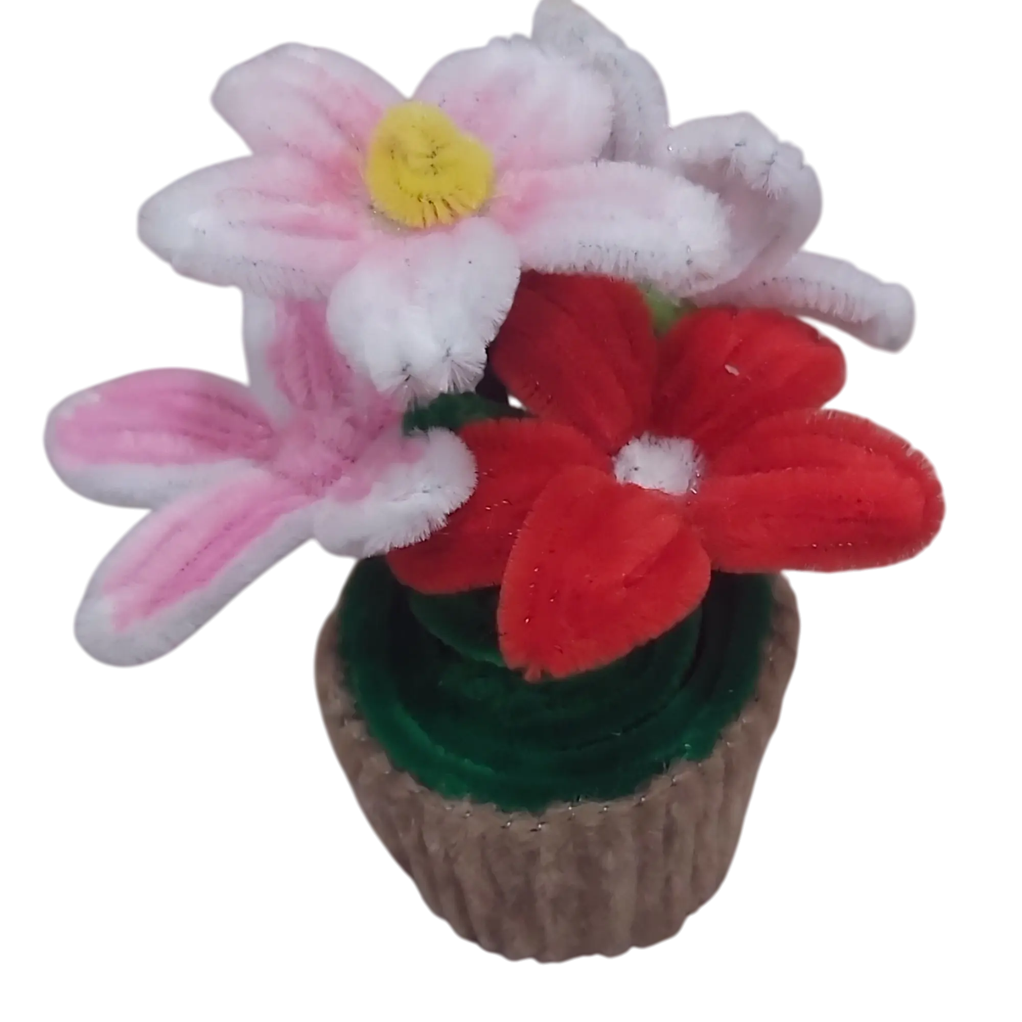 Handcrafted flower. Used as a colorful, "everlasting" table showpiece for desks, shelves, or windowsills where live plants might not thrive. Frequently given as handmade presents for occasions like Mother's Day, Valentine's Day, or Teachers' Day. Small versions are often used as unique souvenirs or "giveaways" for weddings, baptisms, and birthdays.