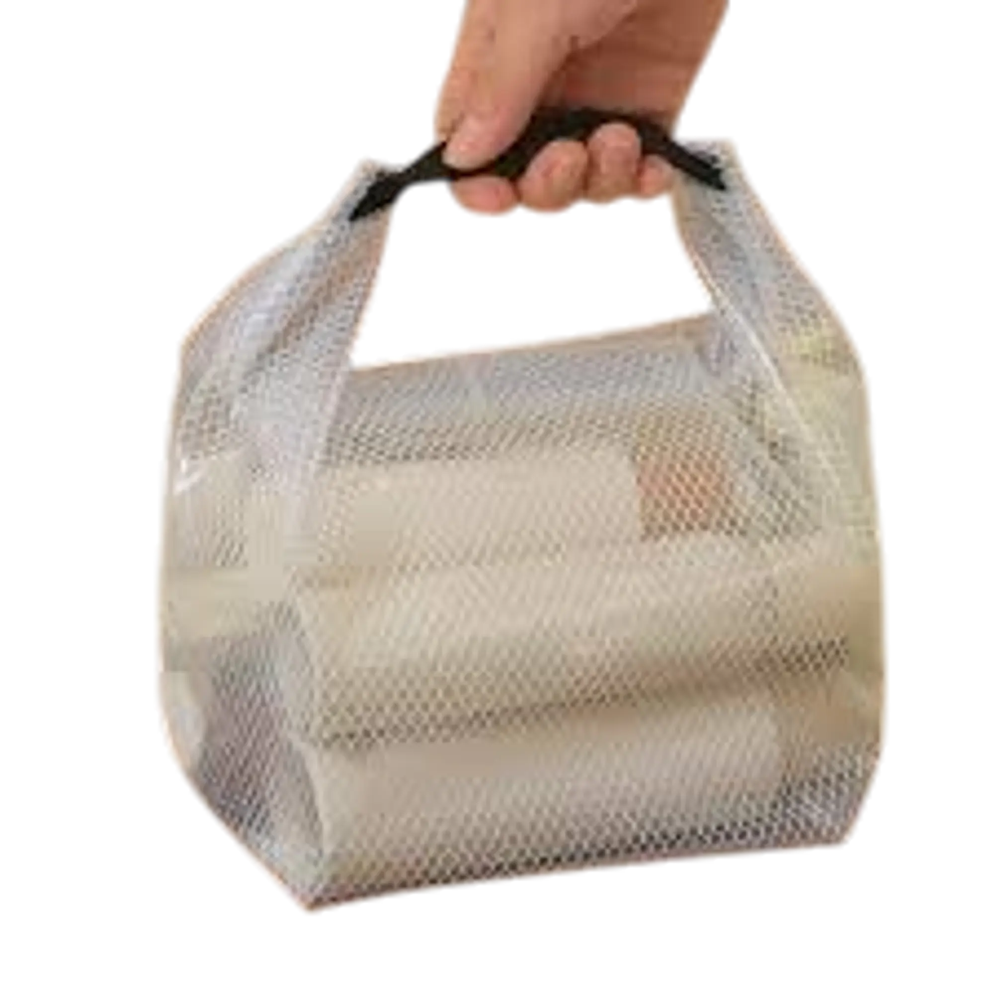 Durable, tear-resistant polyester mesh with a comfortable canvas or webbing handle.